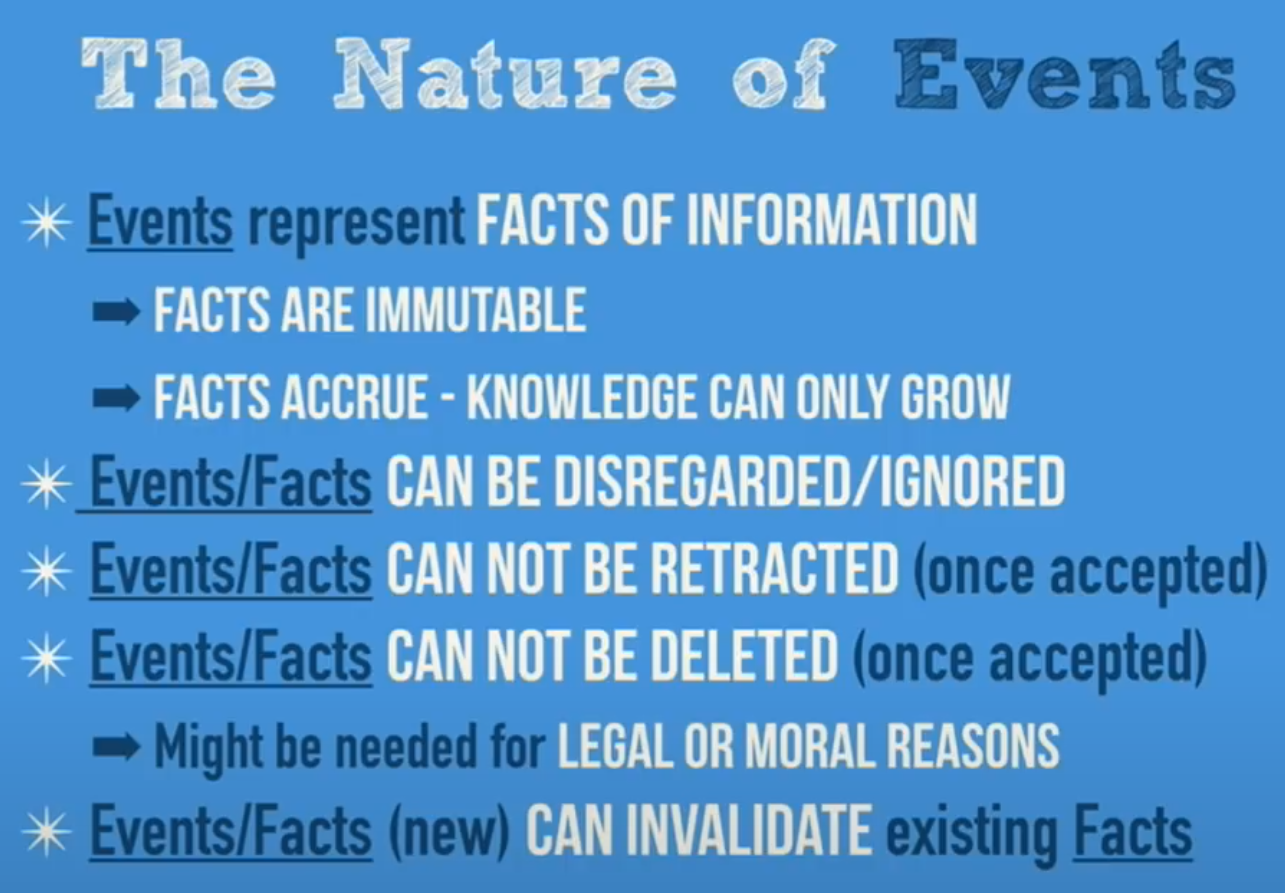- Events represent facts from the past and, therefore, cannot be changed. However, they can be corrected and accumulated.