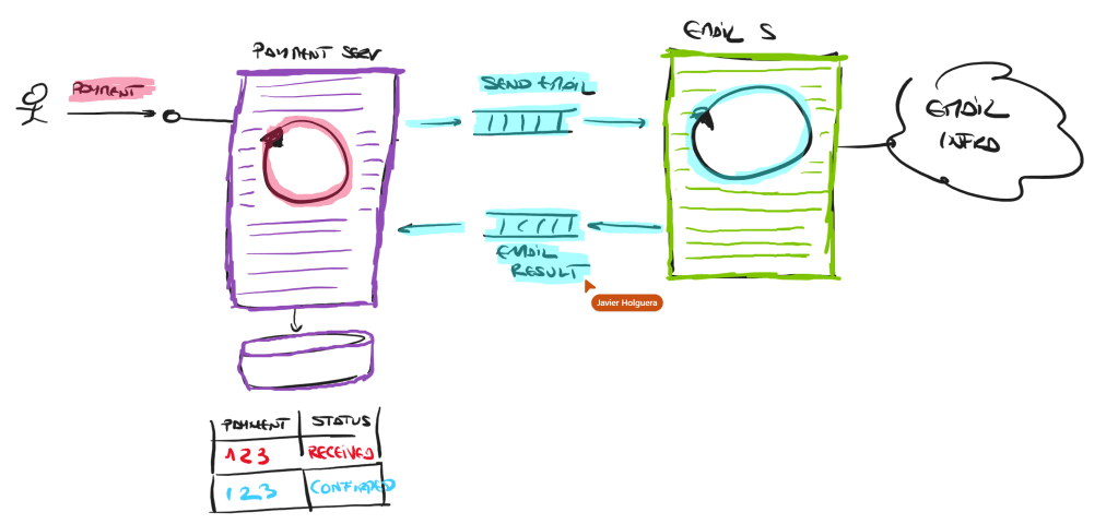 Imagine an application that manages payments. When money is received, it is flagged as “Received.” Upon reception, we want to notify the sender by email. Once the email is sent, the payment is moved to “Confirmed.”